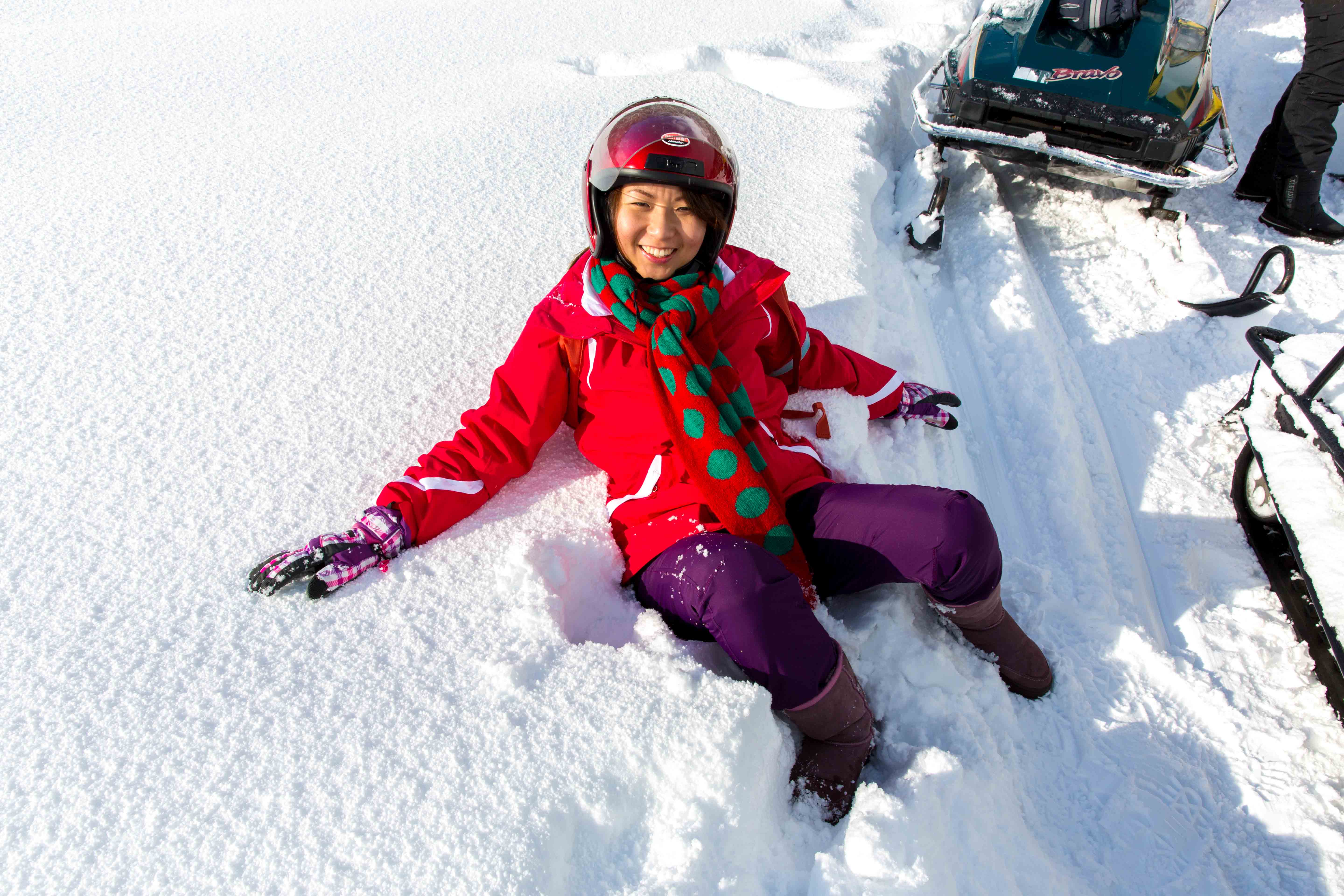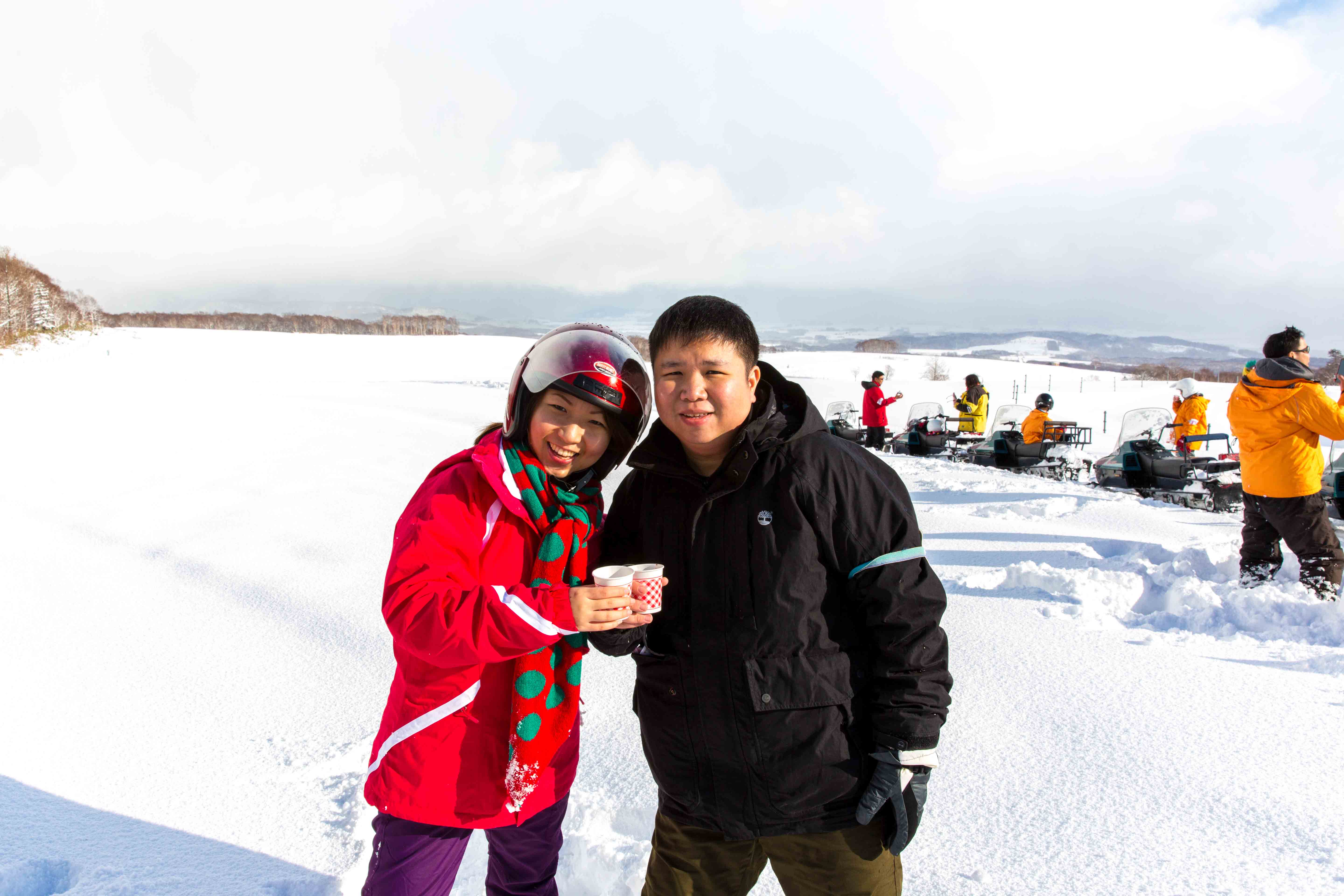 After a while, we reached the top and we stop there to play on the very fine and white snow while drinking the hot milo prepared by the snow jet ski staff