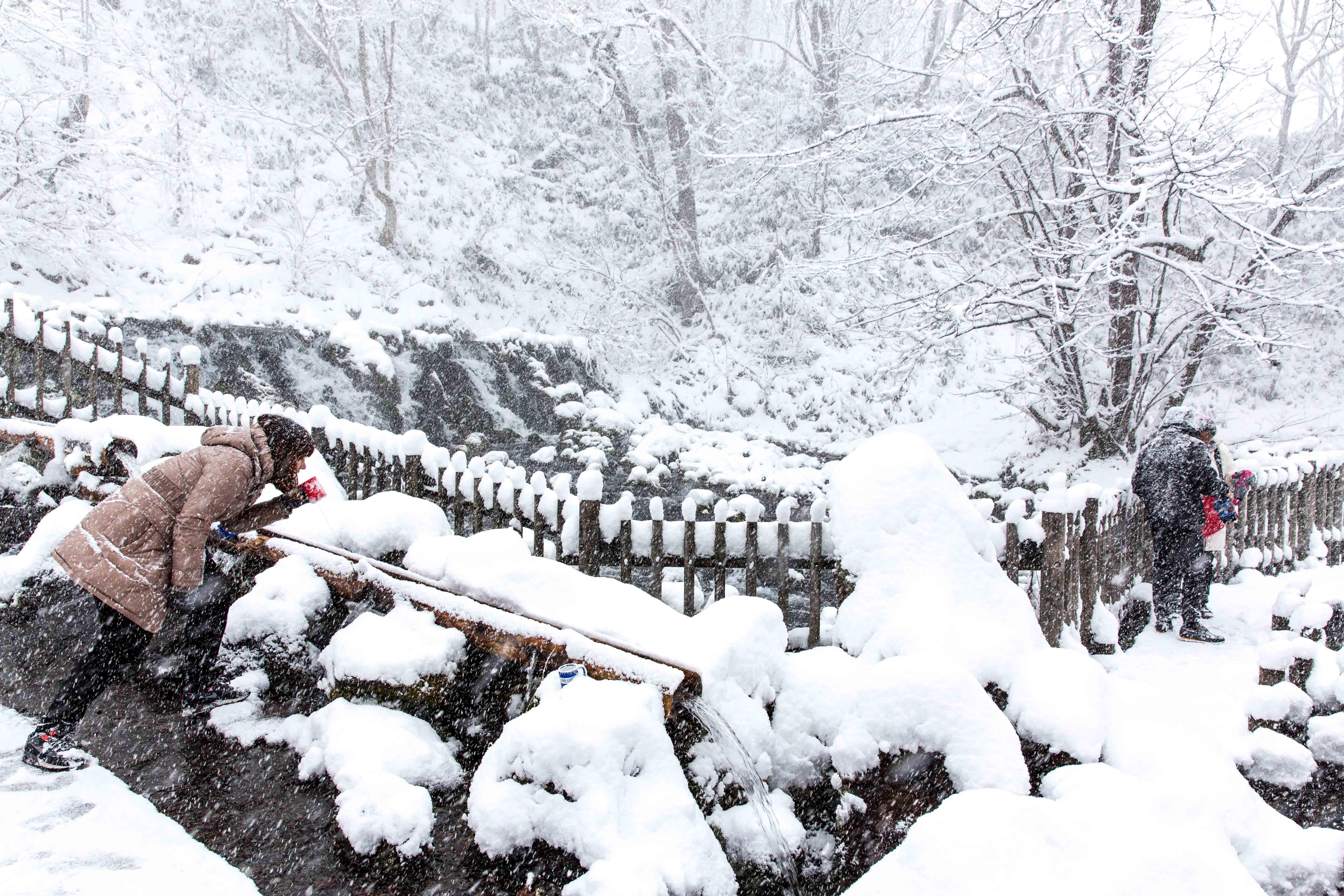 After the lunch, our guide bring us to a place where natural spring water flows. And this natural spring water will never froze even under this cold winter. We also took some of the water in our bottle to drink along the way