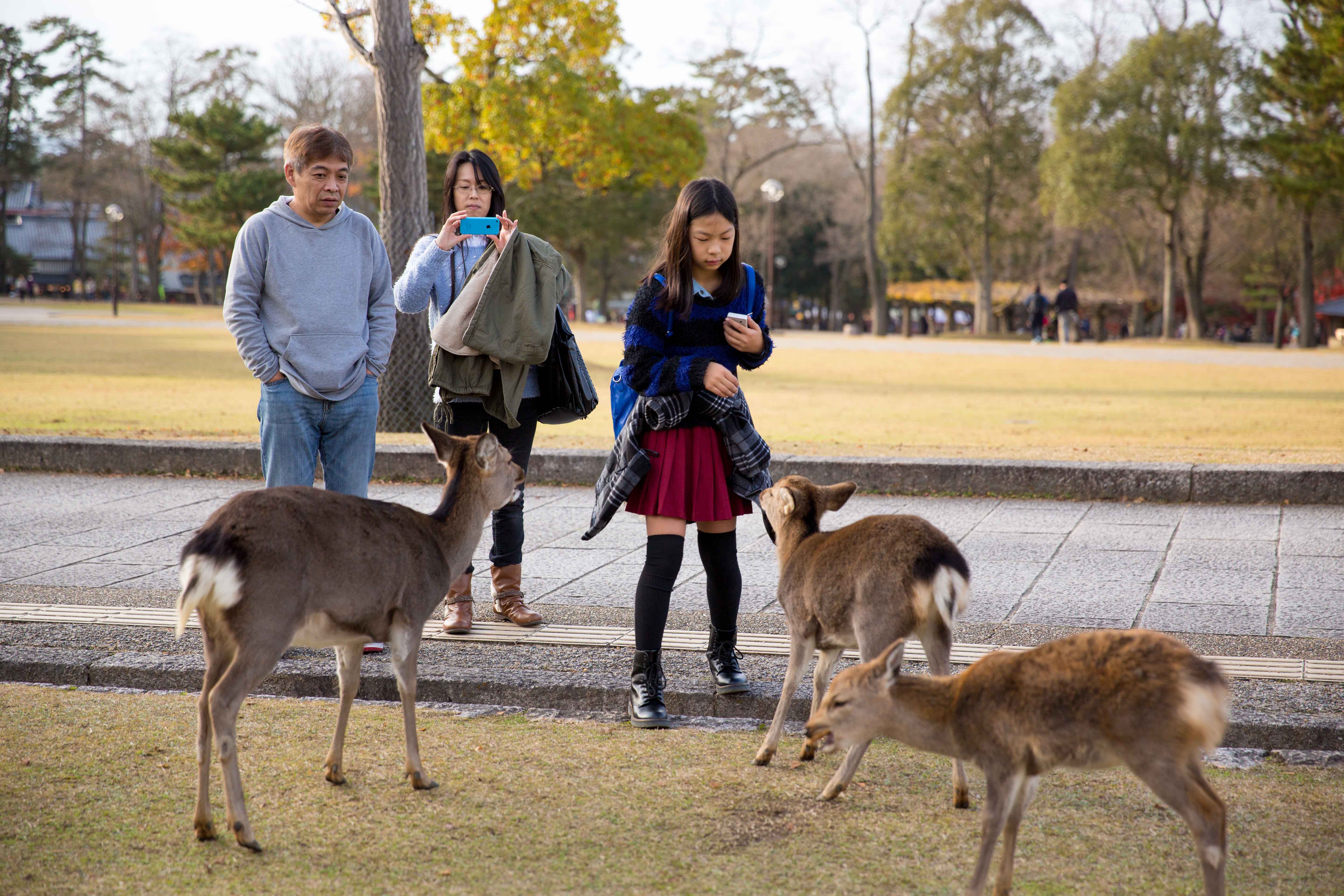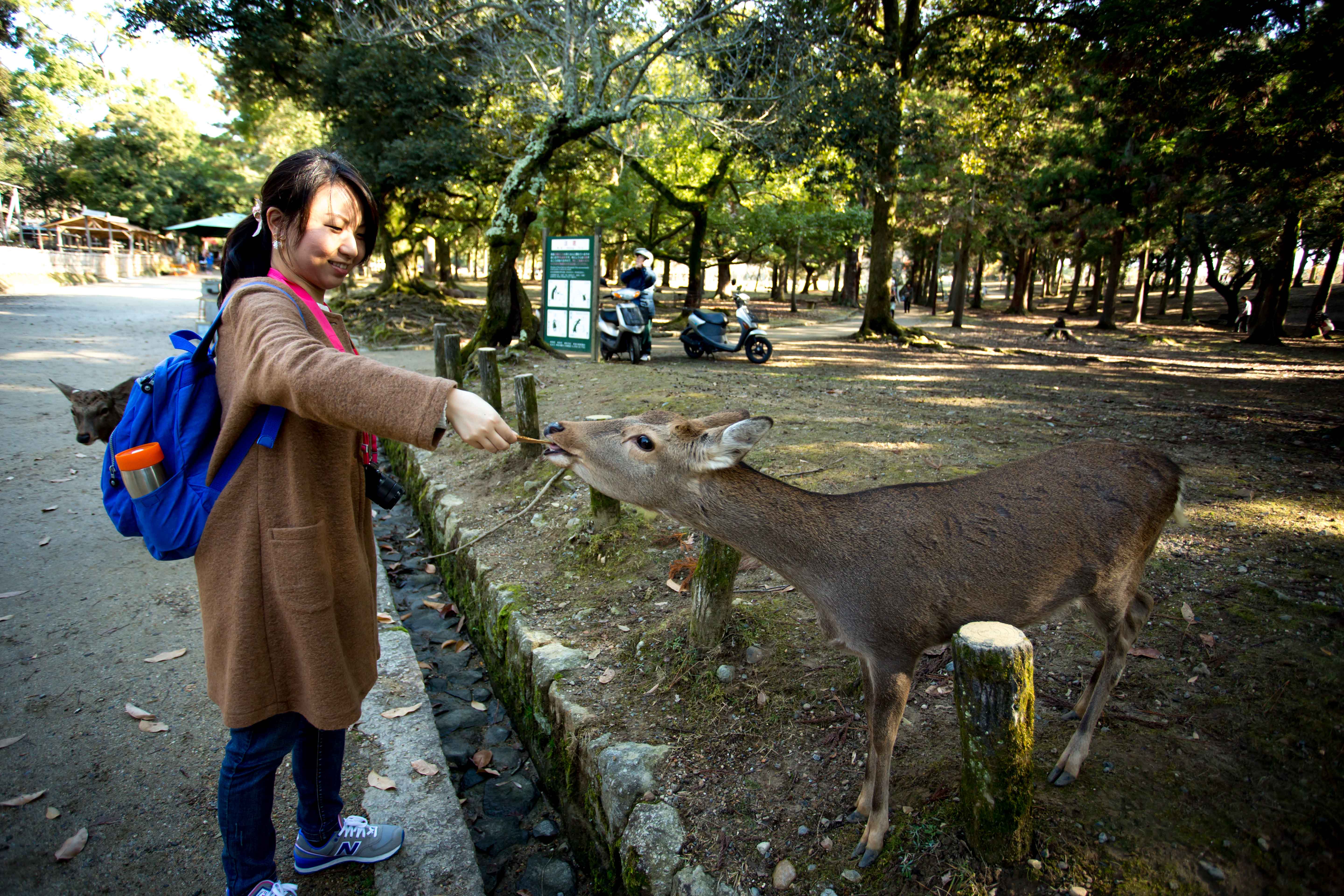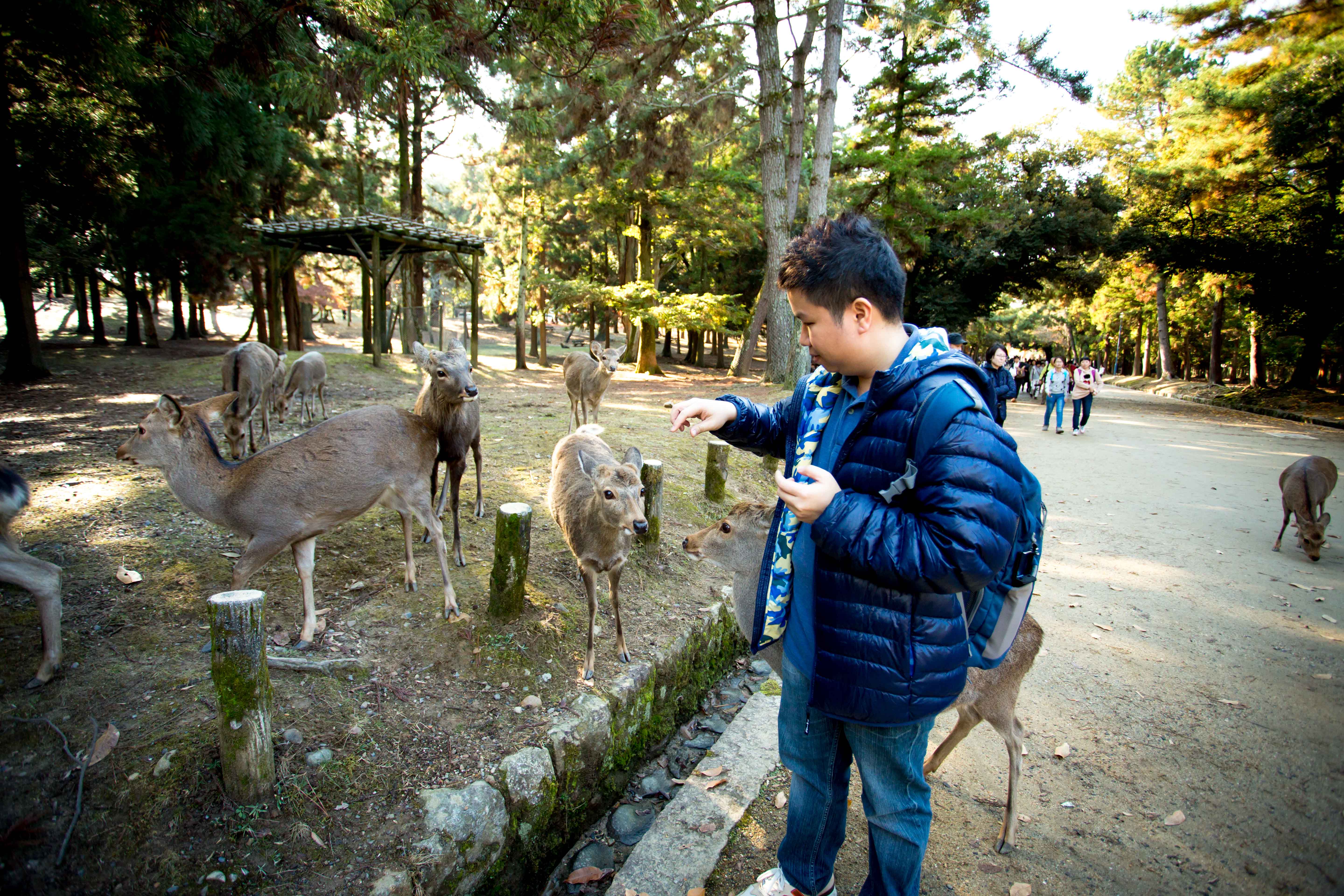 After walking for a while, we reached the park. WOW! The deers really roam around freely and you could feed them. There are some stalls here selling biscuit for the deers