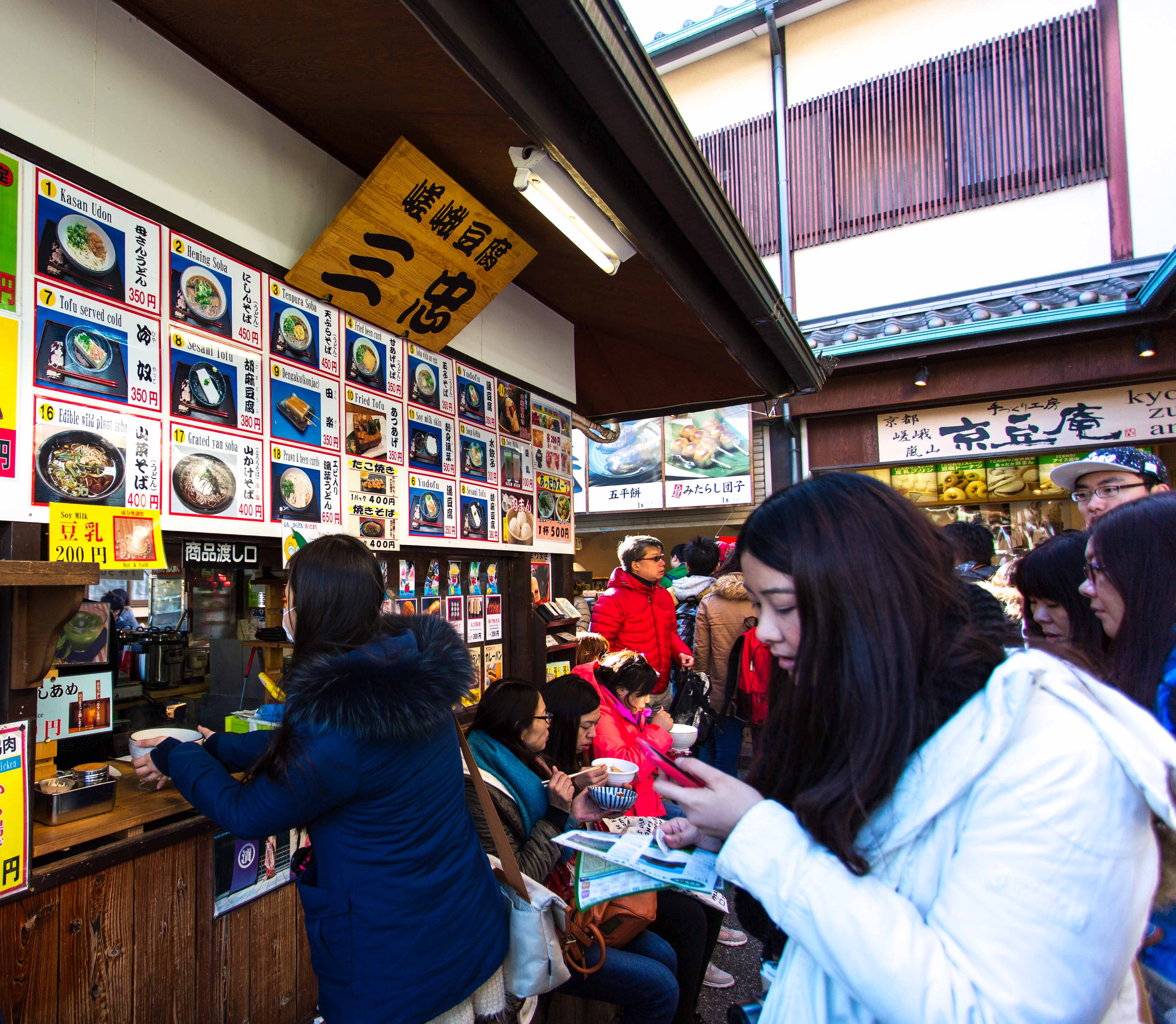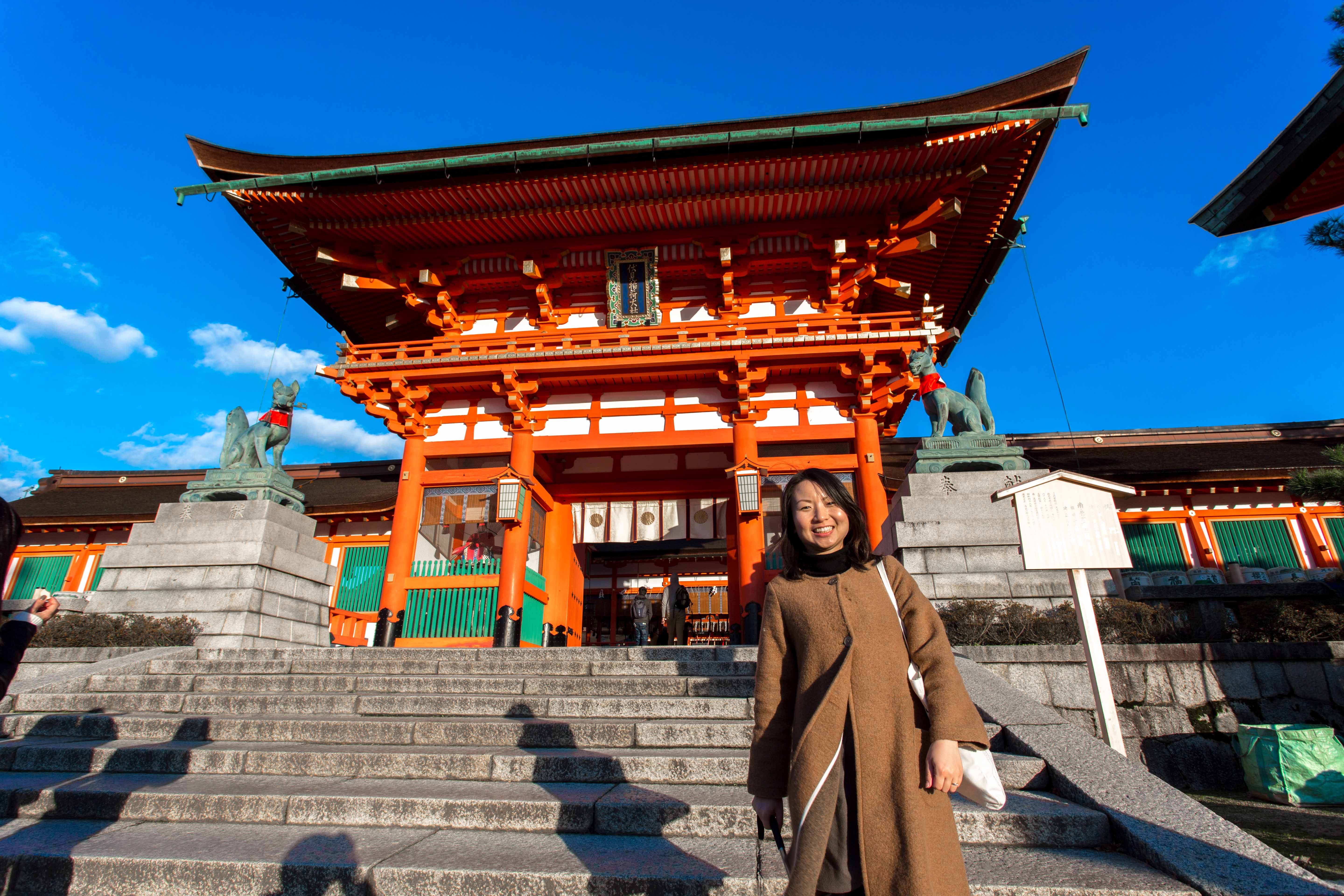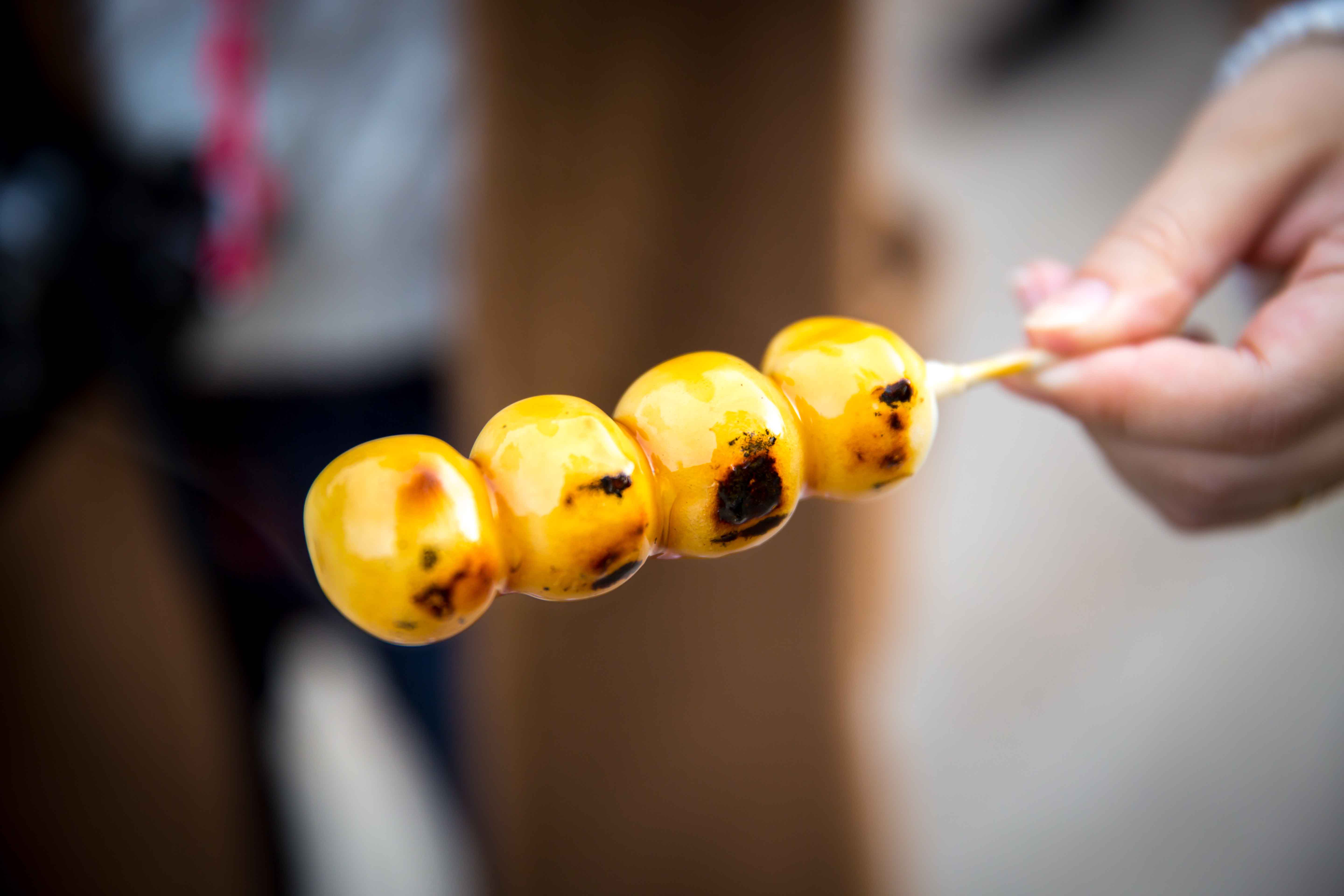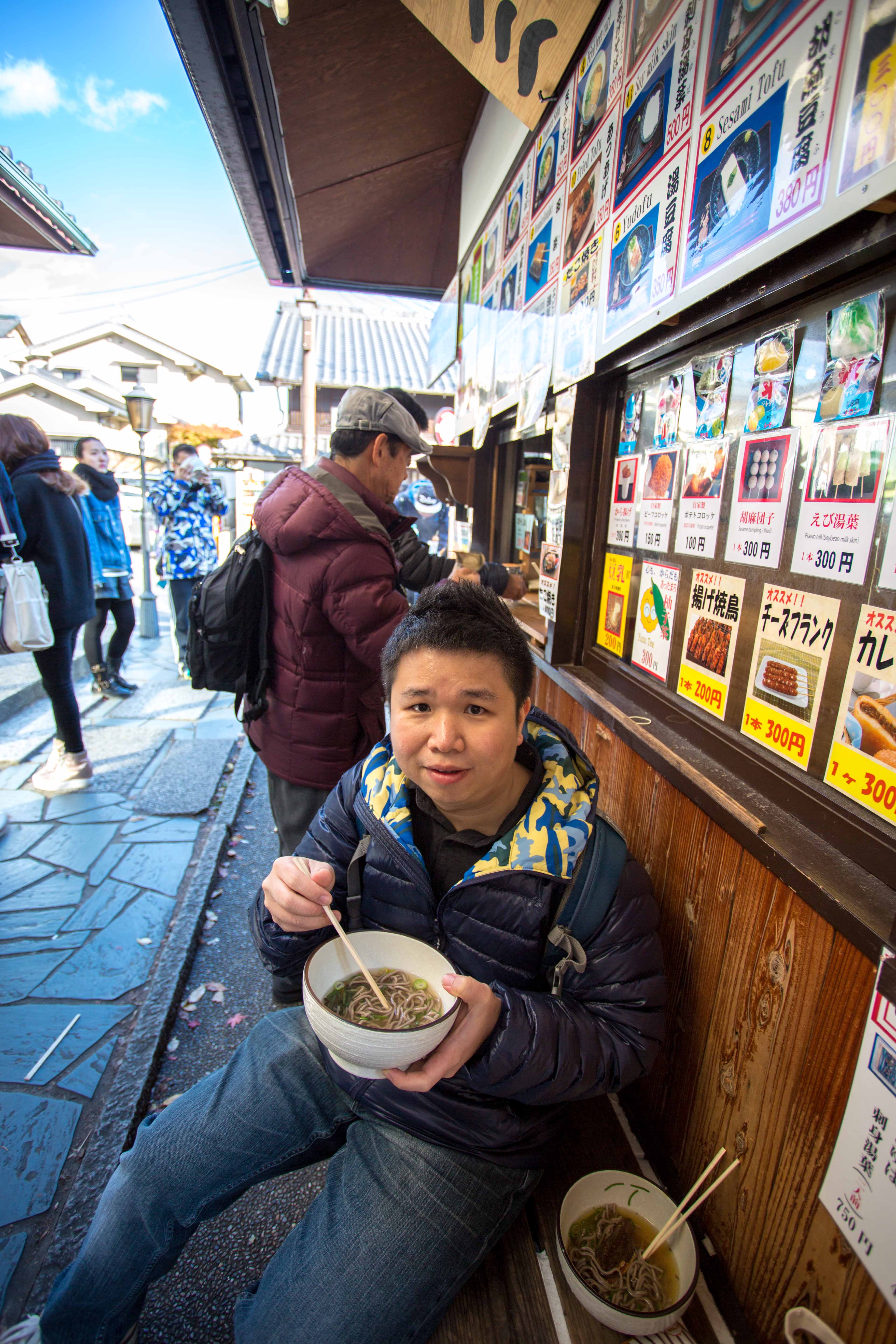 We walk towards the biggest temple in here and pass by some food stores along the way. Bought a stick of sausages and a stick of roasted mochi. The roasted Mochi taste bad……