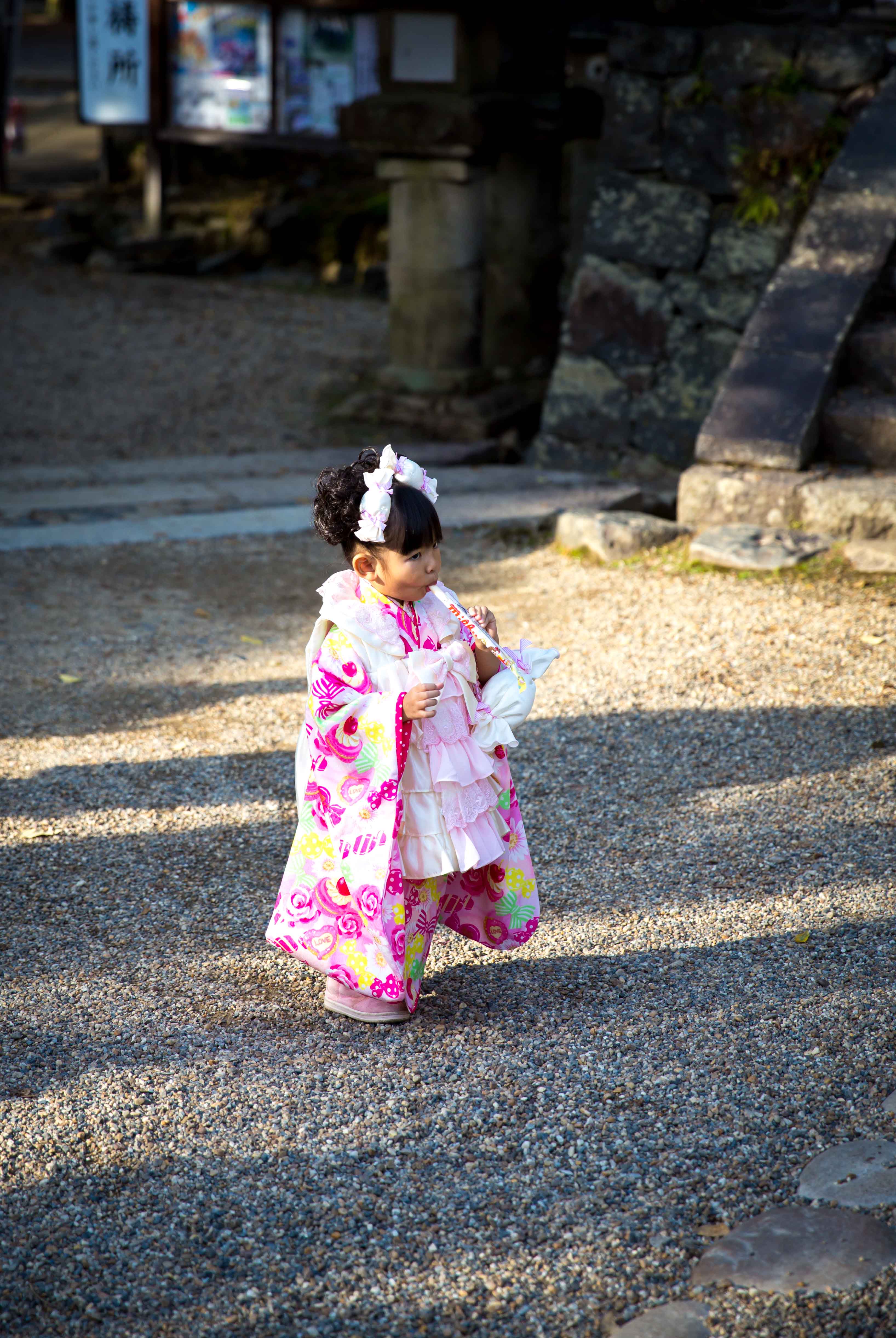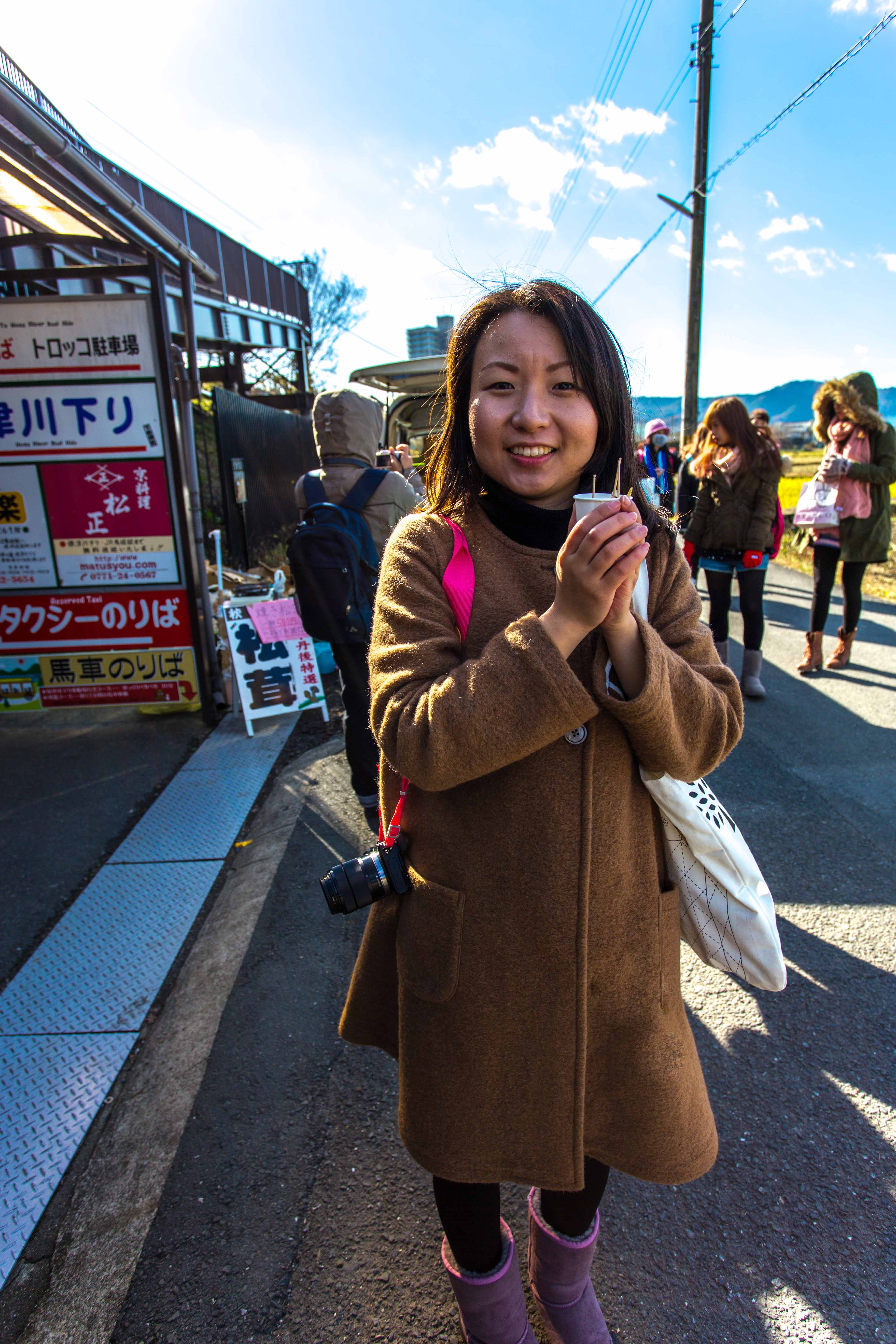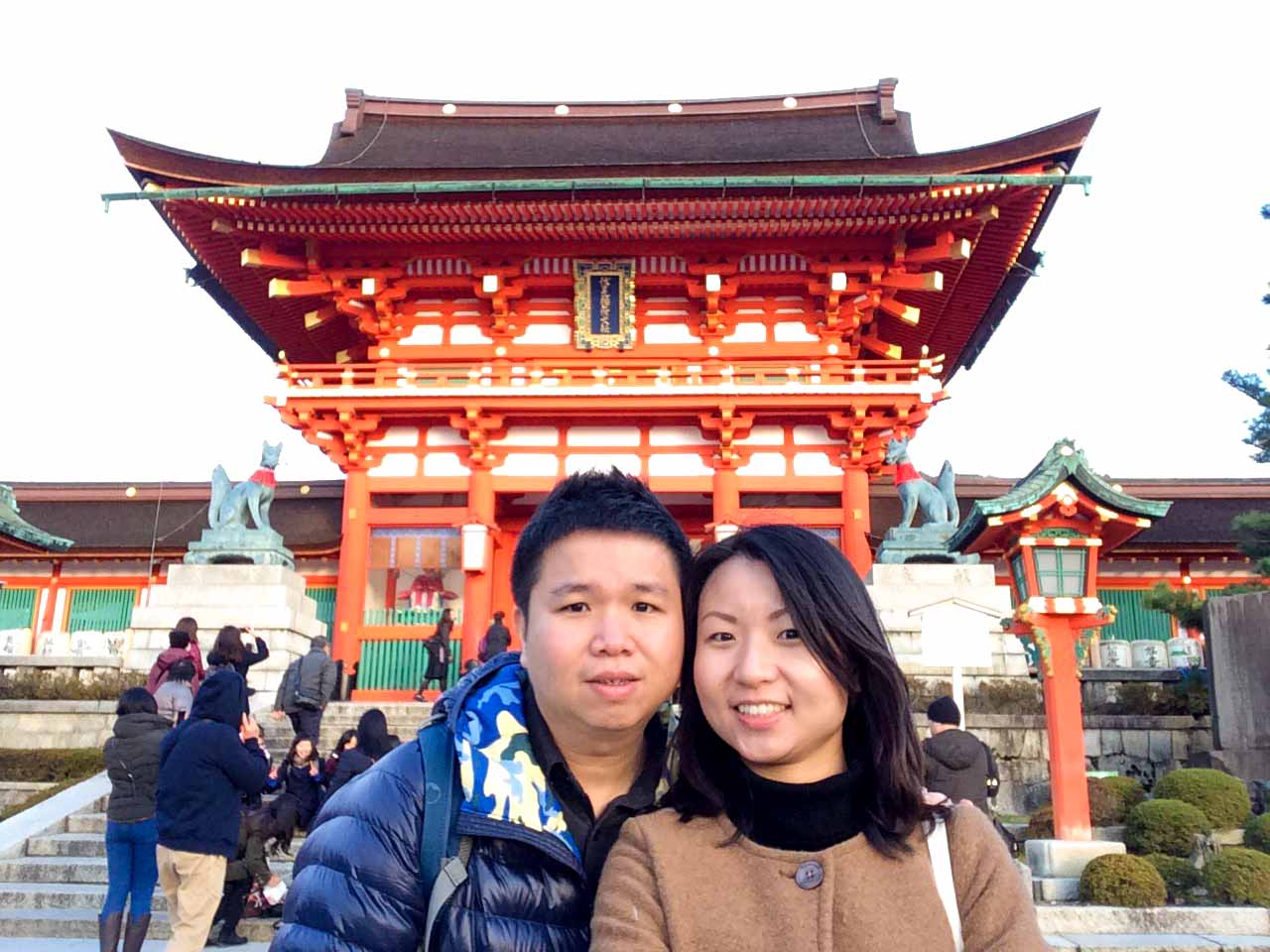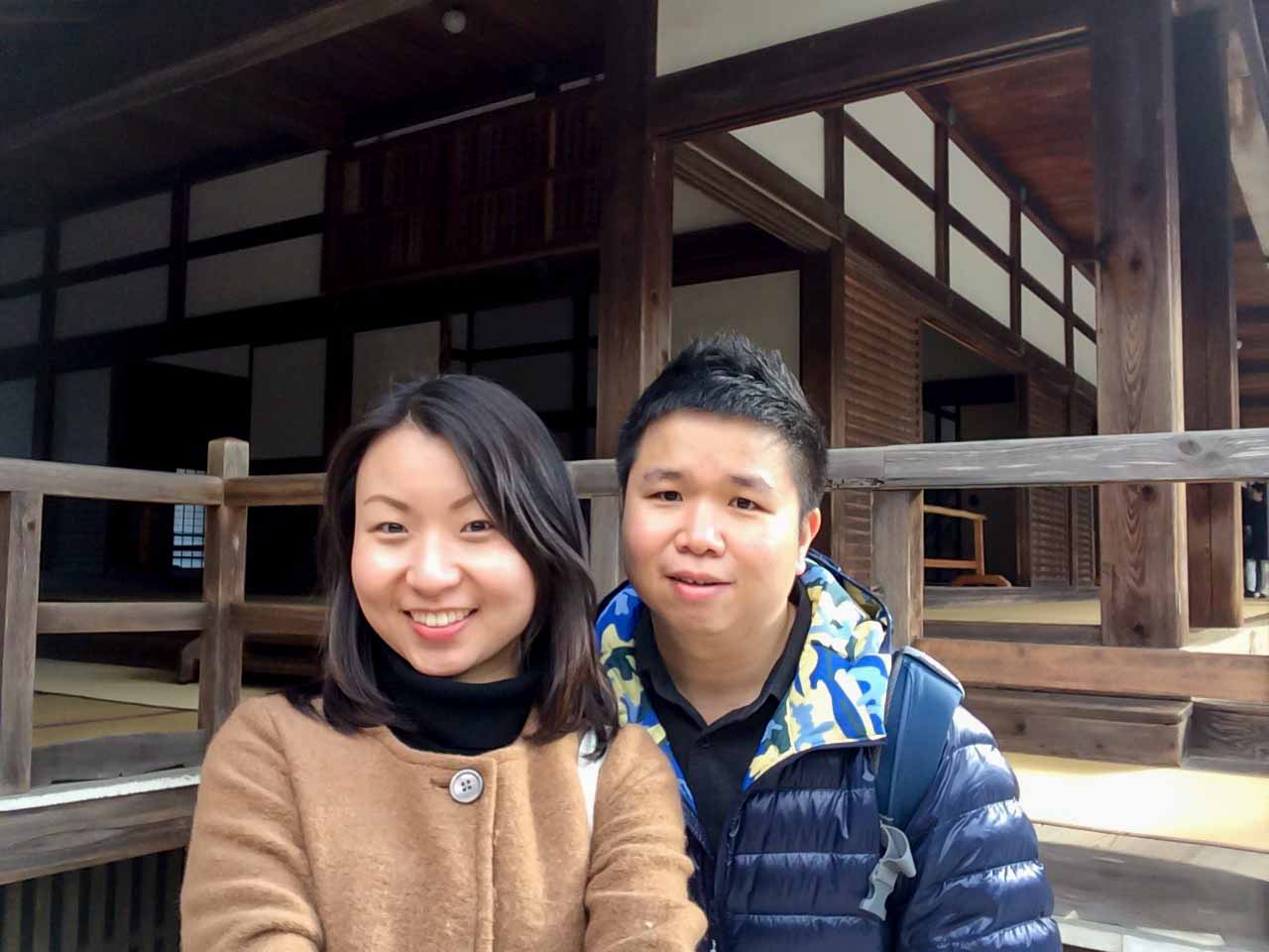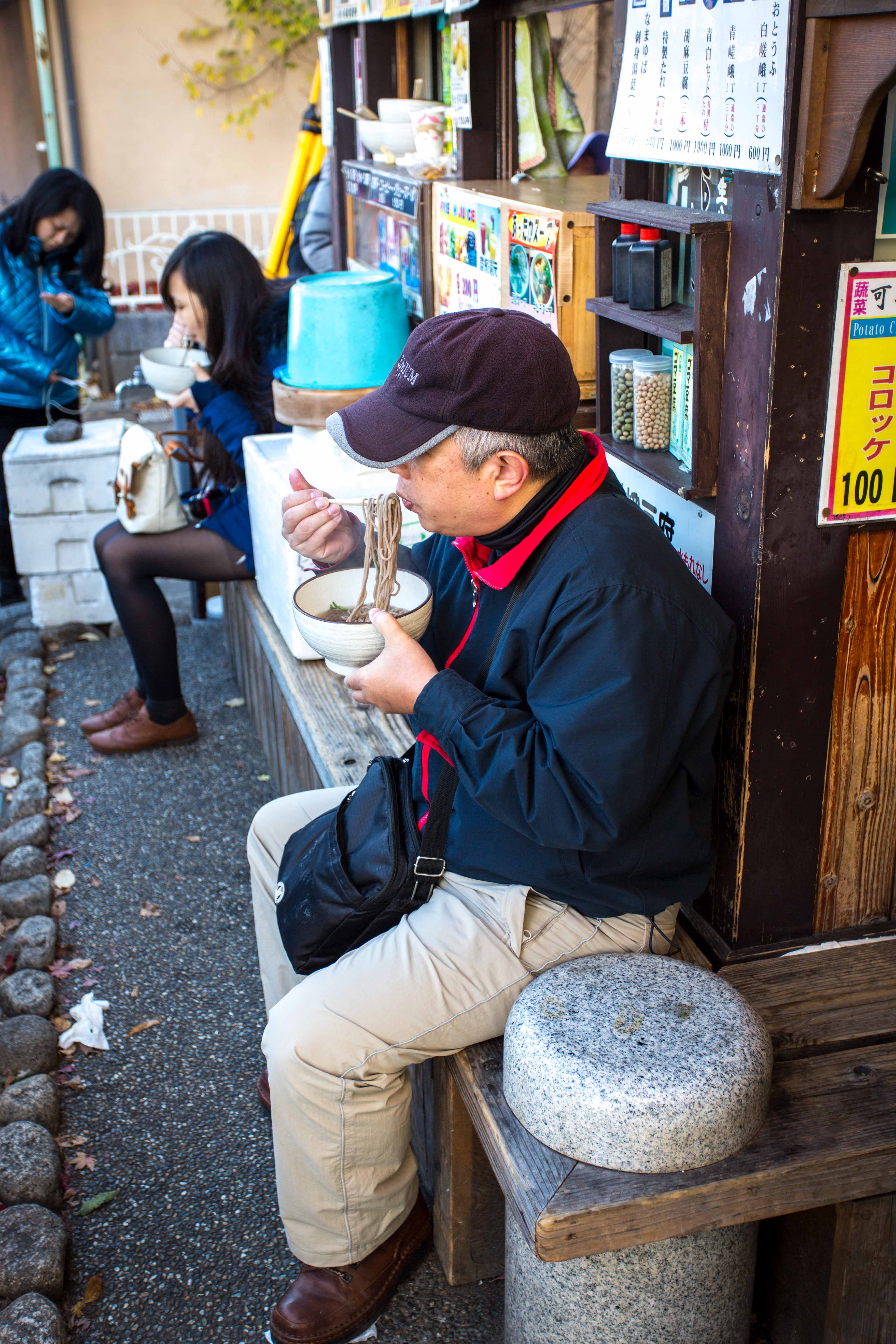We walk towards the biggest temple in here and pass by some food stores along the way. Bought a stick of sausages and a stick of roasted mochi. The roasted Mochi taste bad……