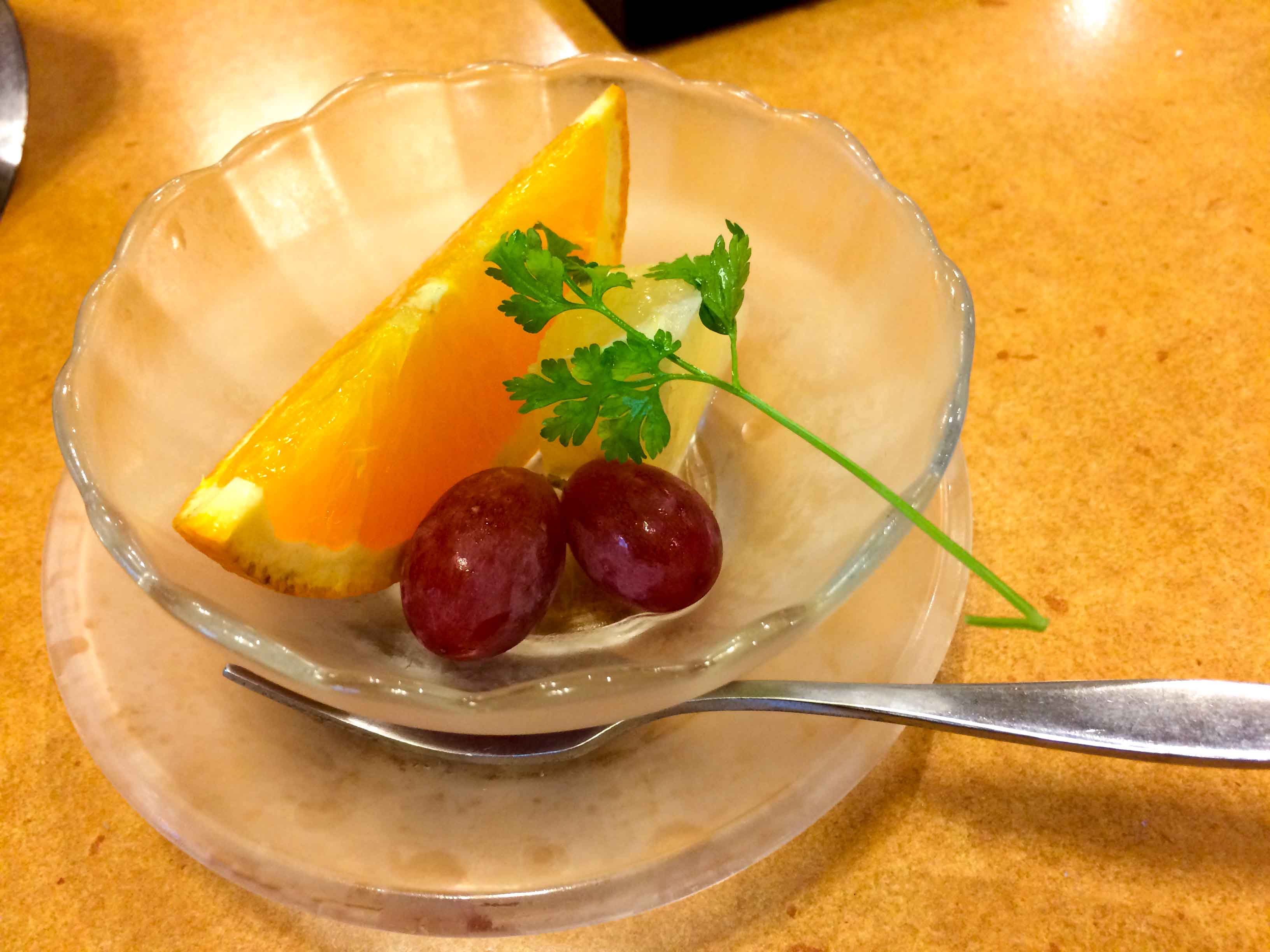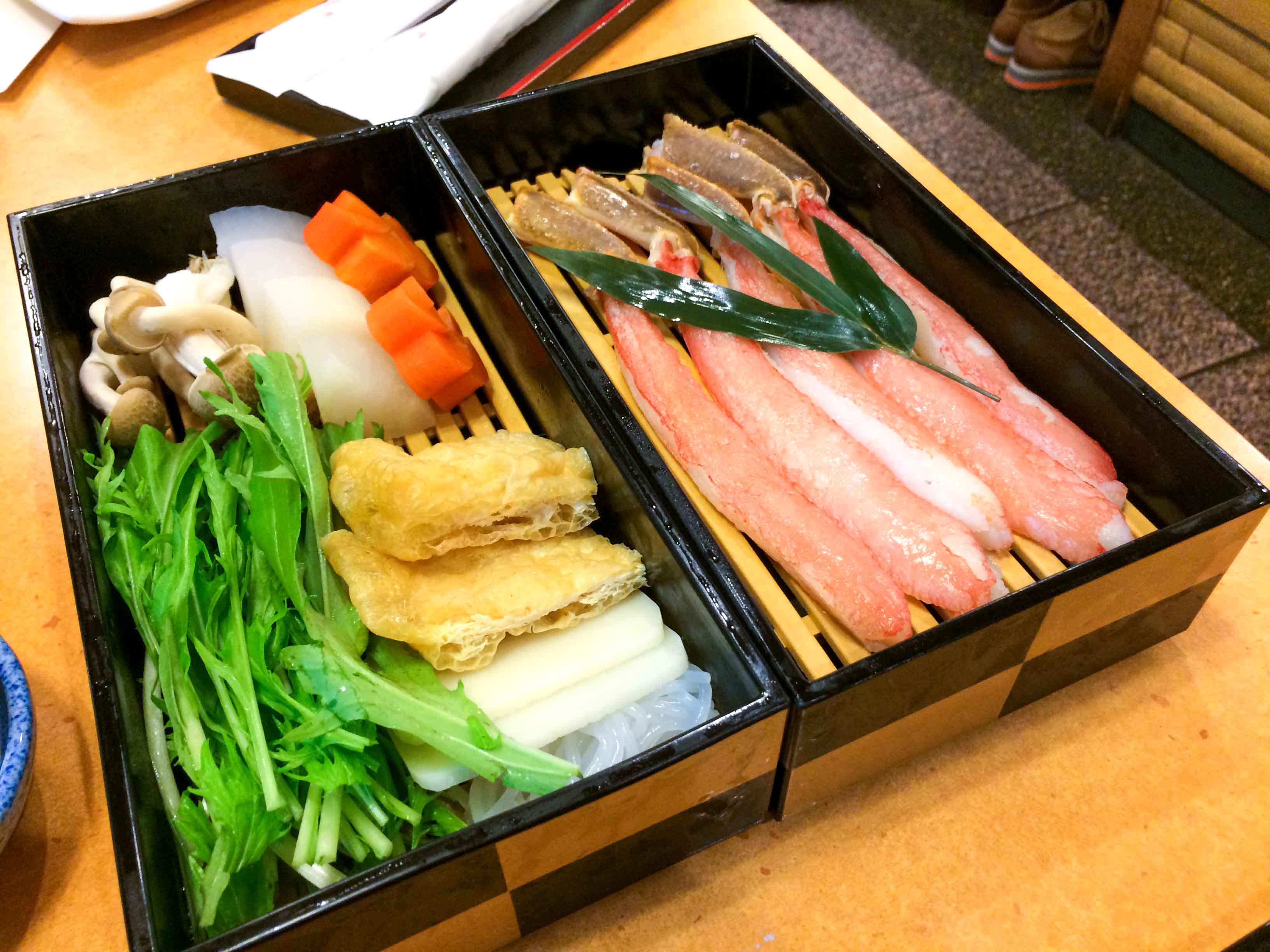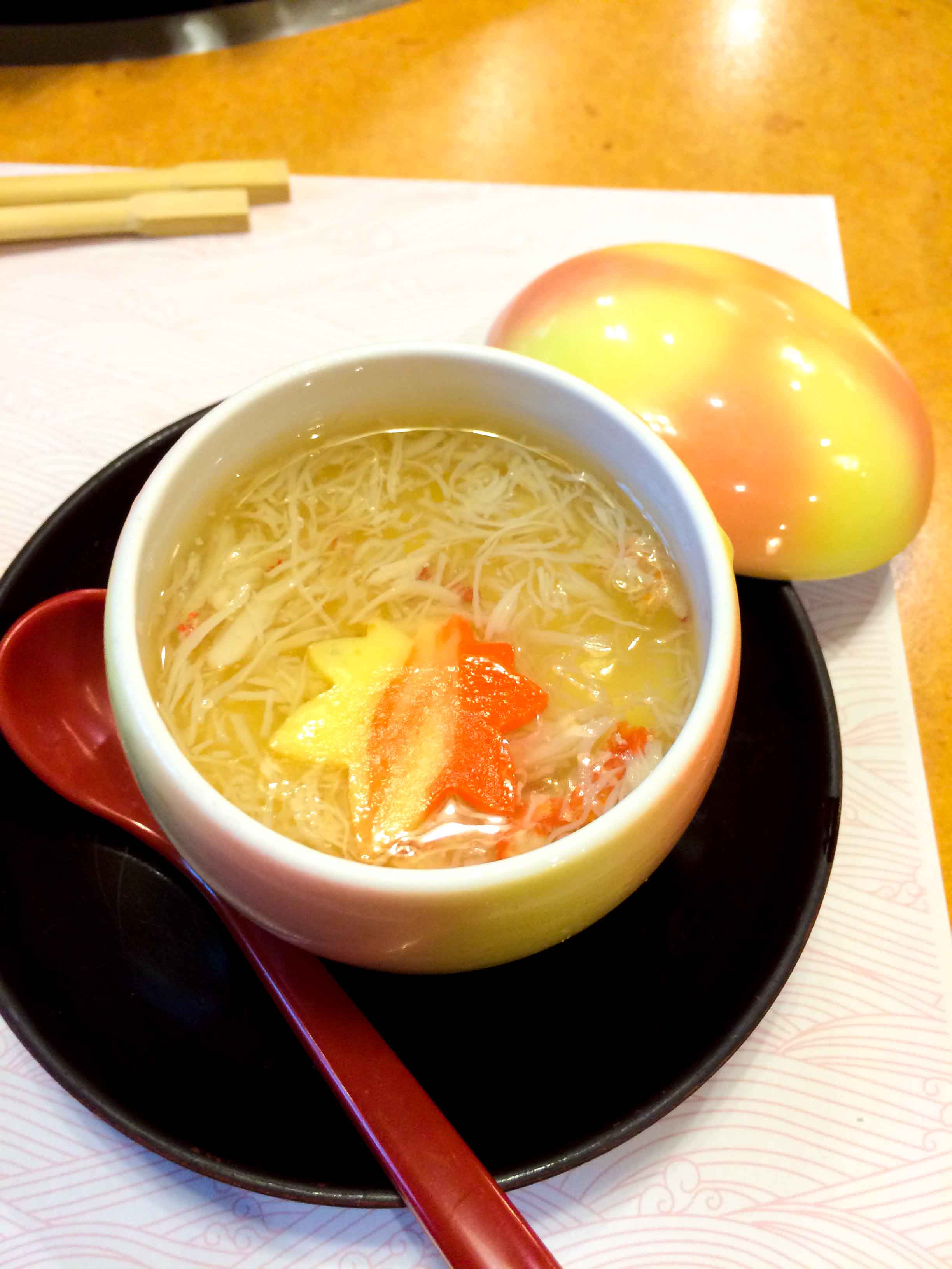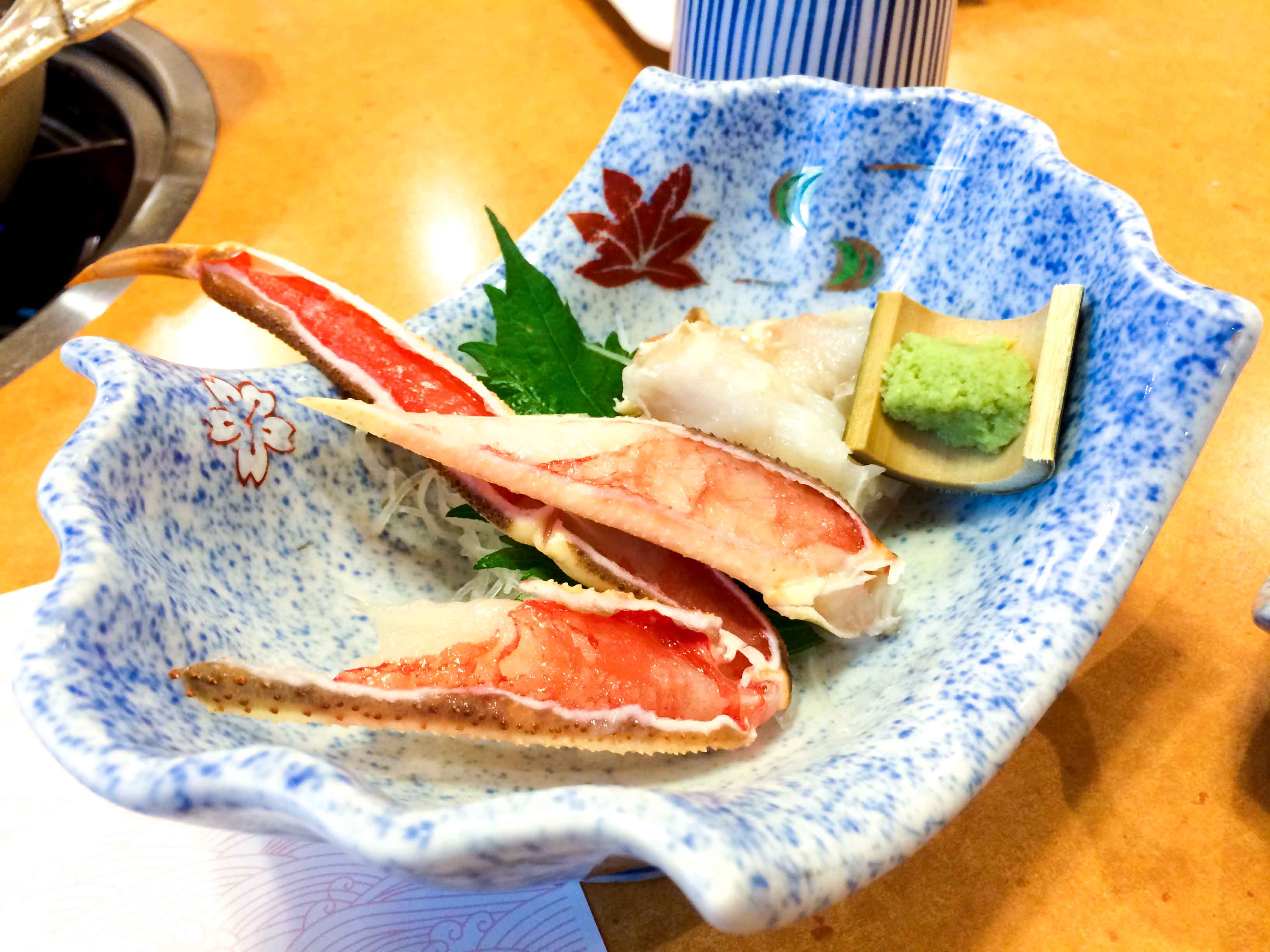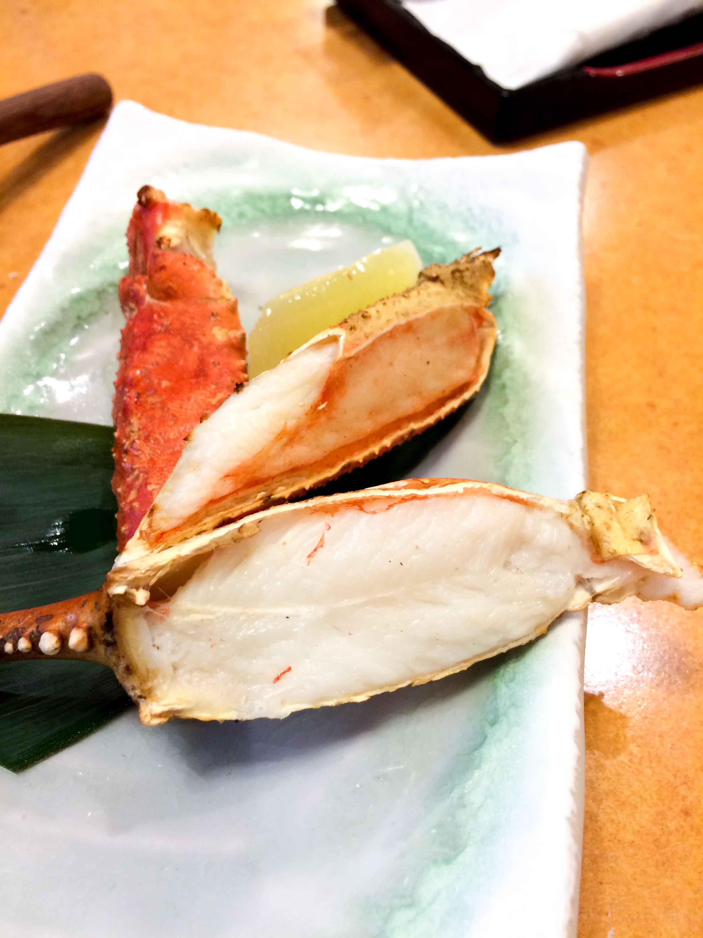 We took this 7500 Yen package which consists of fresh raw crabs, crabs and some vegetables for Shabu Shabu, grill crab, starter dishes which mostly made of crabs ingredients, Chawanmushi with crab in it, miso soup, Sushi with crabs ingredients and fruits. So basically all contain crabs in it.